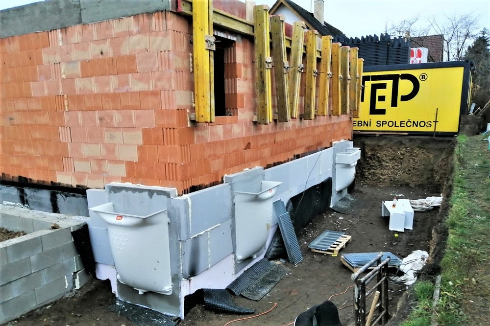 Na svažitých pozemcích někdy bývá dům částečně podsklepen. Menší okno včetně parapetu je celé nad terénem. V tom případě je dobré myslet na to, aby umístění parapetu bylo minimálně 15 cm nad úrovní terénu.