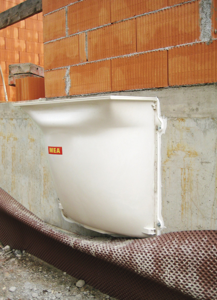 MEA Multinorm 3 v 1 znamená, že světlíky jsou vodotěsné – zátěžové – nastavitelné. Pro vodotěsné provedení je k dispozici speciální sada tmelů a doplňujících příchytek. Tím se zamezí prosakování podzemní tlakové vody mezi hranou dvorku a stěnou objektu. K tomu se dodávají také vodotěsné odtoky, které jsou následně napojené na kanalizační přípojku.
