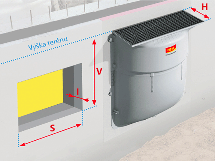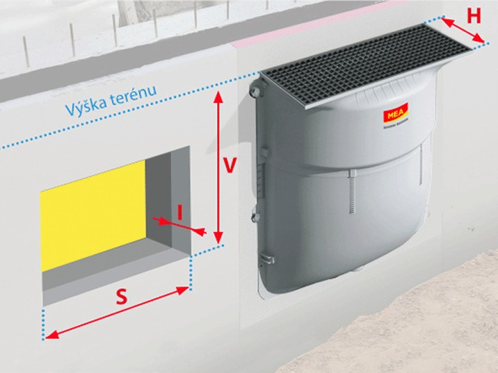 Světlá šířka dvorků MEA Multinorm je od 80 do 200 cm a hloubka (v tomto případě vzdálenost vnější hrany od zdi) je 40-70 cm. Čím hlubší dvorek zvolíte, tím více světla může prostoupit až do místnosti.